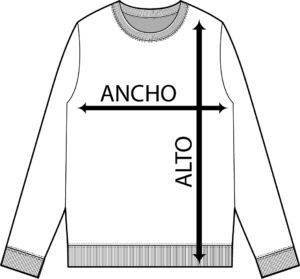 Para o ALTO, mide dende a parte superior do colo ata a parte inferior da prenda como indicamos na imaxe.