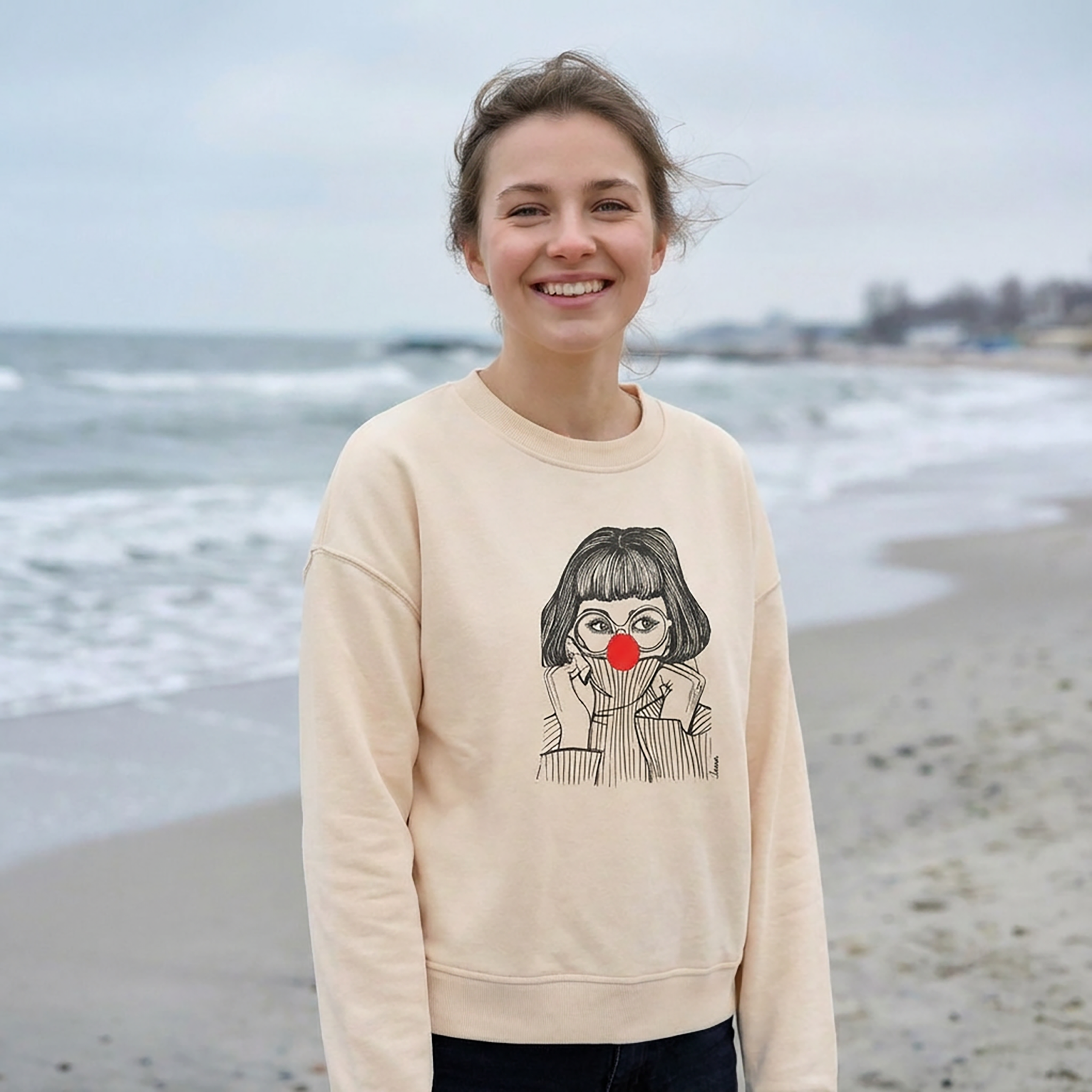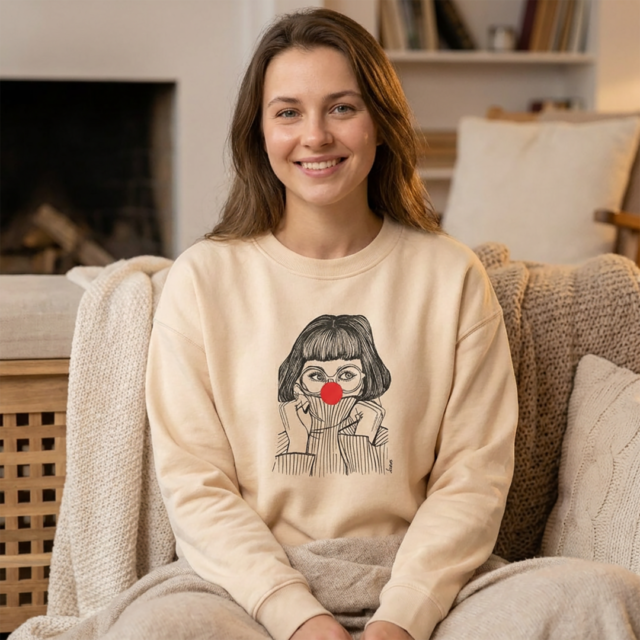 O noso Suadoiro Colorada nace da colaboración coa ilustradora Llanos Luaces, cuxo trazo inconfundible captura a esencia da introspección e a feminidade cun toque de audacia. Un guiño á timidez, e á emoción ou simplemente á algría de ser unha mesma.